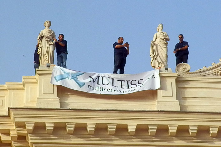 Multiss, quattro dipendenti sul tetto del Palazzo della Provincia