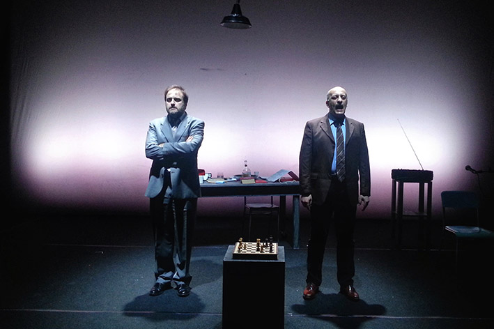 Sotto i riflettori Filippo Dini (tra i più interessanti e apprezzati interpreti della sua generazione, già co-protagonista accanto a Luca Barbareschi de “Il discorso del re”, e vincitore del Premio “Le maschere del Teatro” per il ruolo di Padre Lorenzo nel “Romeo e Giulietta” di Valerio Binasco, e nel 2014 del Premio Hystrio ANCT assegnato dall’Associazione Nazionale Critici Teatrali) nei panni di Giovanni Falcone e Giovanni Moschella (dopo l’esordio ne “La corda a tre capi” per la regia di Arnoldo Foà, ha collaborato con artisti di spicco della scena italiana – da Anna Maria Guarnieri e Pamela Villoresi e Mascia Musy, da Walter Manfrè a Ninni Bruschetta, Saverio Marconi, ed Enzo Vetrano e Salvatore Randisi, e al cinema è stato diretto – tra gli altri – da Mario Martone ne “Il giovane favoloso”) in quelli di Paolo Borsellino.