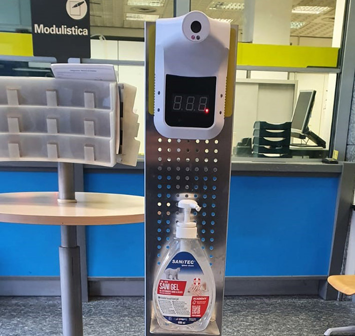 «In 91 uffici postali su 121 della provincia – segnala il direttore della Filiale provinciale di Sassari Marcello Lepuri – sono stati inoltre installati dei termoscanner per la rilevazione della temperatura corporea, davanti ai quali i clienti dovranno sostare pochi secondi prima di poter accedere nella sala al pubblico. L’accesso sarà interdetto nel caso di temperatura rilevata superiore ai 37.5°. Nei prossimi giorni è previsto il completamento dell’installazione dei termoscanner in tutti gli uffici postali della provincia».