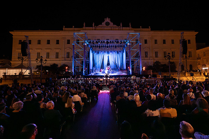 Una serata funestata dalla morte per un malore improvviso di una persona a pochi metri dal palcoscenico (sul lato interno dei Portici Bargone). Nessuna interruzione della rappresentazione, come normalmente si fa in teatro. Lo spettacolo è andato avanti con il pubblico totalmente ignaro della tragedia, questa reale, che si stava consumando lì vicino.