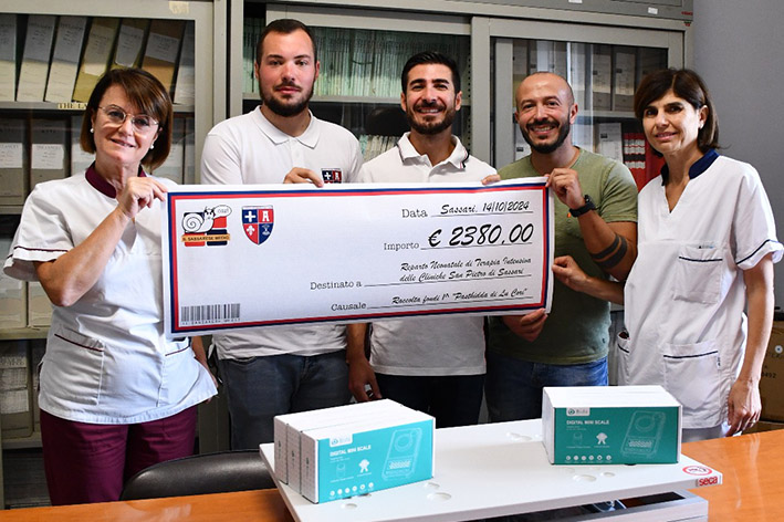 Sassari. Una donazione che fa la differenza per la Terapia intensiva neonatale e Neonatologia dell’Aou di Sassari: sei bilance di precisione per dosare integratori e farmaci, un carrello di supporto, un’asciugatrice e una poltrona letto destinata ai genitori dei piccoli pazienti. Le apparecchiature sono state donate dall’Associazione sportiva dilettantistica Centro Storico Sassari e da “Sassarese Medio” alla Terapia intensiva neonatale e Neonatologia dell’Aou di Sassari.
