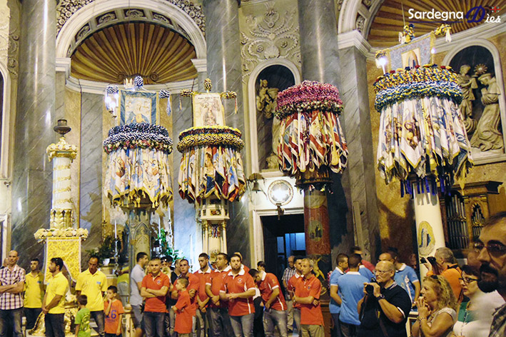 Da Santa Maria sono quindi usciti i candelieri dei Massai, che si sono subito diretti verso il convento dei Frati Minori di San Pietro di Silki dove è custodita la Madonna delle Grazie, la loro patrona (ed anche di Sassari), dei Calzolai (Santa Lucia a San Nicola), dei Viandanti (Madonna del Buon Cammino a Sant’Agostino) e dei Fabbri (Sant’Eligio Vescovo a San Nicola). Sono rimasti a Santa Maria Muratori (Madonna degli Angeli), Contadini (San Giovanni Battista, detto “della Nebbia”), Falegnami (San Giuseppe), Ortolani (Santa Maria di Valverde), Piccapietre (Madonna della Salute) e Sarti (Madonna di Monserrat, ovvero la “Moreneta”, patrona della Catalogna: la cappella è in restauro da alcuni anni).