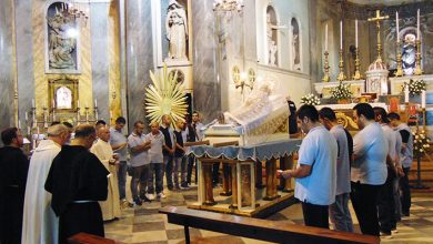 Prima del saluto del padre guardiano dei francescani conventuali di Santa Maria, Alfio Pusceddu, il simulacro della Vergine Assunta, raffigurata in posizione dormiente, è stato portato in processione intorno alla chiesa. Al termine è stata recitata la preghiera a Maria Assunta e poi una strofa tratta dal canto Dell‘aurora tu sorgi più bella. «Vogliamo bene alla madre del Signore e la vogliamo ringraziare perché anche quest’anno ci ha dato la possibilità di sciogliere il Voto. Invochiamo il suo amore e soprattutto la sua benedizione», ha detto padre Alfio. Il rientro è stato accompagnato dal canto dell’Ave Maria in sardo.