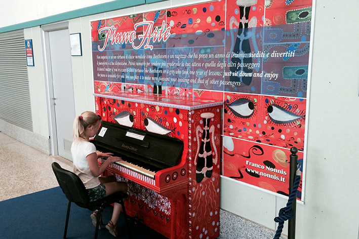 In pochi giorni già un successo. Nell’area check-in un bellissimo pianoforte multicolore è a disposizione di chiunque lo voglia suonare