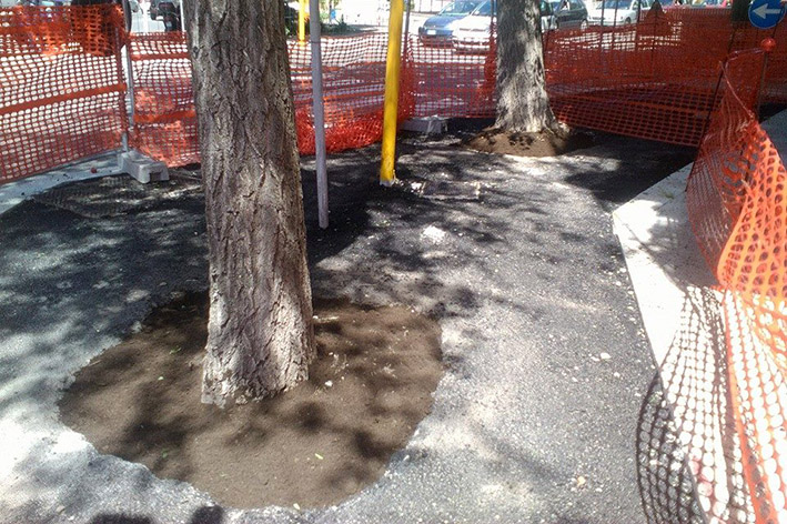 Sassari. Non c’è giorno ormai che su Facebook e sui social in generale non ci sia una segnalazione o una critica sulle piste ciclabili in corso di realizzazione a Sassari. L’ultima riguarda un albero in viale Italia (all’incrocio di via Rockefeller) la cui base è stata totalmente catramata e inglobata nell’asfalto. La foto (di cui pubblichiamo un particolare) è stata ripresa e condivisa da parecchi utenti di Facebook (tra cui Tino Grindi, che non ha fatto mancare il suo punto di vista critico).
