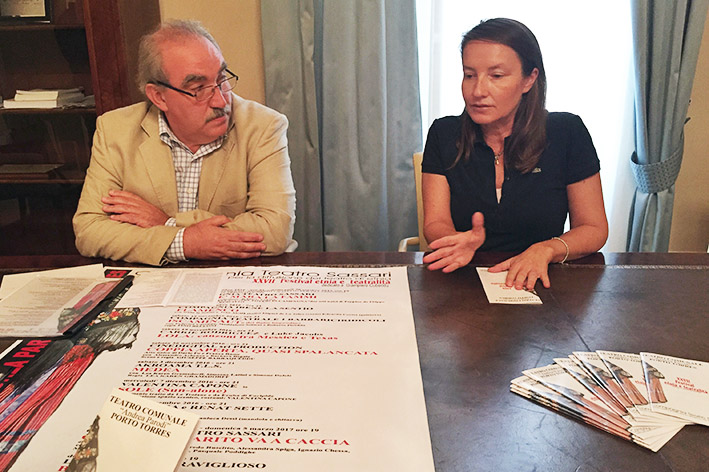 A presentare la rassegna, per conto della Compagnia Teatro Sassari, c’era Mario Lubino, il quale ha ricordato che «il 2017 sarà l’anno in cui la nostra compagnia festeggerà i quarant’anni di attività e anche per questo abbiamo cercato di allestire un cartellone ancora più ricco, ma utilizzando risorse economiche quasi simili a quelle dello scorso anno. Ventisette anni fa creammo proprio qui a Porto Torres il teatro d’etnia. Già allora intuimmo l’importanza della salvaguardia della lingua d’origine per il rinnovamento della scena italiana ed è ciò che poi avvenne, perché è stato svecchiato il linguaggio drammaturgico attingendo proprio dalla testualità popolare. Il cartellone creato quest’anno prevede appuntamenti con la musica latina, affronta temi come la libertà sessuale, porta in scena i classici e la comicità. È un cartellone con tanti generi e speriamo che, anche in considerazione dei prezzi davvero contenuti, possa esserci una buona partecipazione». Il festival si aprirà sabato 29 e domenica 30 ottobre con “Cant’è mara la fammi”, della Compagnia Teatro Sassari. Quattro gli appuntamenti di novembre: il 5 la Compagnia Irene La Sentìo in “Flamenco”, il 12 “Iscaminaut o del figlio improdigo” della Compagnia I Barbarici ridicoli, il 19 Carrie Rodriguez e Luke Jacobs sono protagonisti di “Lola: canzoni fra Messico e Texas”, il 26 “Coppia aperta, quasi spalancata”, scritto da Dario Fo e Franca Rame, presentato dalla Cinedigital Production. Altri tre appuntamenti sono previsti a dicembre: il 3 “Medea” della Compagnia Akroama, il 7 “Sole (Sun alone)” interpretato da Valentina Capone, il 16 Elva Lutza e Renat Sette in “Amada”. Il 4 e 5 marzo la Compagnia Teatro Sassari porta in scena “Quando il marito va a caccia” e il 26 marzo sarà la volta di “Blumen” de L’Effimero Meraviglioso. Domenica 2 aprile “La scuola delle mogli” a cura di Abc produzioni Compagnia Stabile Enrico Guarneri e chiusura il 22 aprile con la comicità di Grazia Scuccimarra in “Sono una donna laceroconfusa”.