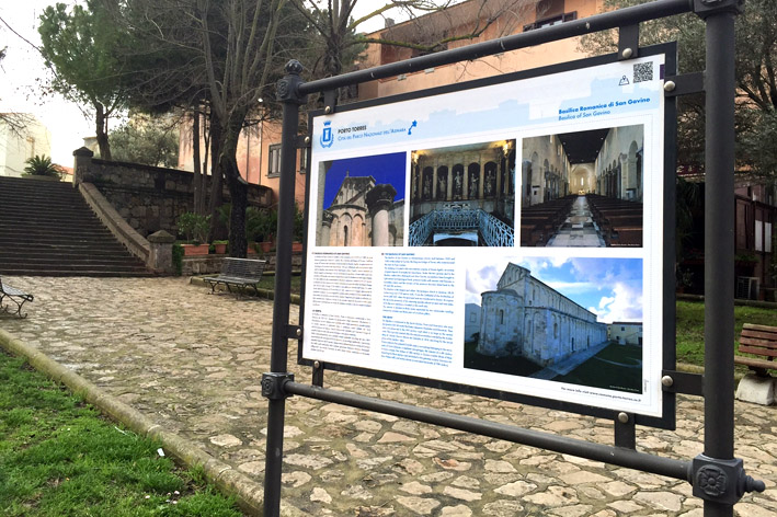 Ogni pannello ha la denominazione “Porto Torres Città del Parco Nazionale dell’Asinara” e sopra è stato impresso anche un elemento “tecnologico”, il QR Code, grazie al quale gli utenti potranno ricevere direttamente sul loro supporto multimediale preferito maggiori informazioni sulle modalità di fruizione dei siti, semplicemente posizionando sul codice il proprio smartphone o tablet dotato della relativa applicazione. Le installazioni sono state portate a termine in prossimità del Museo del Porto e Stazione Marittima, dell’Antiquarium Turritano e dell’area archeologica di Turris Libisonis, del Ponte Romano, della Chiesa di Balai vicino e della Basilica romanica di San Gavino. Nei prossimi giorni si procederà al posizionamento dell’ultimo pannello, quello adiacente alla Torre Aragonese, oggetto di un maggior degrado e su cui dovrà essere effettuata un’accurata manutenzione.