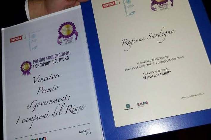 Cagliari. Premio e-Government per la Sardegna a Milano nel corso di Smau, l’evento fieristico dedicato all’informatica e alle nuove tecnologie. L’amministrazione regionale ha realizzato un sistema telematico di gestione di tutti i procedimenti amministrativi per l’avvio e lo sviluppo d’impresa di competenza degli Sportelli Unici per le Attività Produttive, denominato “Sardegna Suap”. La Regione ha ricevuto il premio “Campioni del Riuso” perché il Sistema è stato concesso alla Regione Calabria e si è confermato perfettamente flessibile e adattabile al diverso contesto normativo e amministrativo.