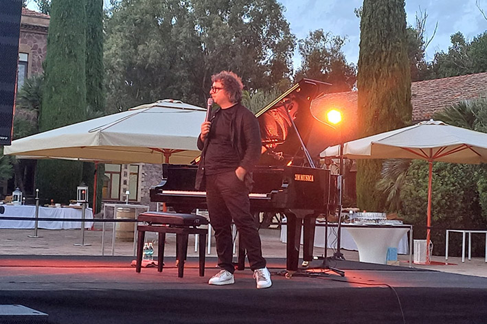Alghero. Avvolto da una cornice naturalistica mozzafiato unica nel suo genere, qual è quella delle tenute Sella&Mosca, (che venerdì 2 settembre ha ospitato l’evento curato dalla fondazione Alghero), il concerto del famosissimo pianista Remo Anzovino ha riscontrato un crescendo di consensi e applausi durante tutta la sua esibizione. Così da ricevere a fine concerto anche una standing ovation, con un applauso durato alcuni minuti. A dire il vero, il maestro Remo Anzovino, è stato più volte applaudito a scena aperta anche per tutta la durata del concerto sia per le sue perfette esecuzioni musicali uniche nel suo genere sia per la bellezza delle melodie da lui scritte e dove il piano magistralmente suonato con divinità è diventato un caleidoscopio di musica e passioni. Insomma, si può ben affermare che la serata di venerdì è stata un’esperienza emozionale unica, che ha condotto il pubblico attraverso un viaggio musicale immaginario ottenuto con i brani eseguiti e tratti dagli album e dalle colonne sonore scritte per il cinema dallo stesso musicista Anzovino. I pezzi magnificamente eseguiti sono stati: Transoceano, En Plein air, Les Jours perdus, Nocturne in Tokyo, Estasi, Galilei, No Smile (buster Keaton), Sulla corda, Frida Viva La Vida, Following Light, Cammino nella notte, Vincent, Istanbul, Natural Mind, Igloo, Bis – Metropolitan. A chiusura concerto le tenute Sella&Mosca hanno offerto un brindisi ai convenuti omaggiandoli con i vini di Sella&Mosca, accompagnati da una degustazione di salumi e formaggi locali davvero squisiti e ottimi.