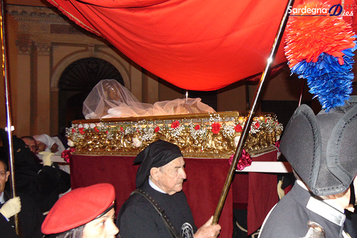 Alle 17,45, nella chiesa della Santissima Trinità, ha preso il via l’azione liturgica con la lettura del “Passio” dal Vangelo. Il momento culminante è stato il rito della Deposizione (Iscravamentu) del Cristo morto. Il pregevole simulacro ligneo del XV secolo, con le braccia mobili, uno degli esempi più belli ancora utilizzati in Sardegna, è stato prima issato sulla croce al centro della chiesa e poi deposto da due figuranti che interpretavano Giuseppe d’Arimatea e Nicodemo. Alle 19 è partita la processione guidata dal “Babbarrottu” (con cappuccio bianco e croce di legno) con la Via Crucis per le vie della città, a cura dell’Arciconfraternita di Santa Croce e del Gonfalone. Intorno alle 20,30 il passaggio sotto al Duomo, con i simulacri della Madonna Addolorata, di San Giovanni e di Cristo deposto presi in consegna dall’Arciconfraternita dell’Orazione e Morte (composta esclusivamente da confratelli appartenenti alle antiche famiglie nobiliari sassaresi e vestiti con il tradizionale e caratteristico saio e cappuccio nero, abito che in passato veniva indossato quando si accompagnavano al patibolo i condannati a morte) e dai volontari del CISOM (Corpo Italiano di Soccorso dell’Ordine di Malta).