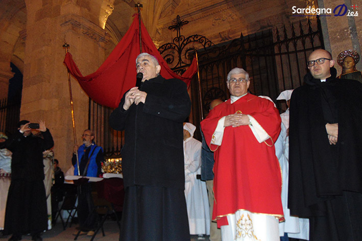 Come da tradizione, dalla scalinata di San Nicola, l’arcivescovo di Sassari, padre Paolo Atzei, ha rivolto un saluto alla grande folla di fedeli in attesa nella piazza. «Vi sono molto grato per la vostra presenza. Anche stavolta il rito de S’Iscravamentu è stato molto composto. La cultura della celebrazione deve avere un suo ordine, perché le cose meglio organizzate attirano maggiore partecipazione. Quanto è bello sfilare per la città di Sassari portando gli strumenti i segni della morte e della passione di Cristo. Dobbiamo ricordare questo nella vita di tutti i giorni», ha detto padre Paolo. «Gesù è stato incredibilmente punito dagli uomini, “castigadu” come diciamo in sardo, ovvero punito da chi ha rifiutato Dio, consegnato da Pilato per una ingiustizia terribile. Grazie Signor,e che hai sofferto per noi».