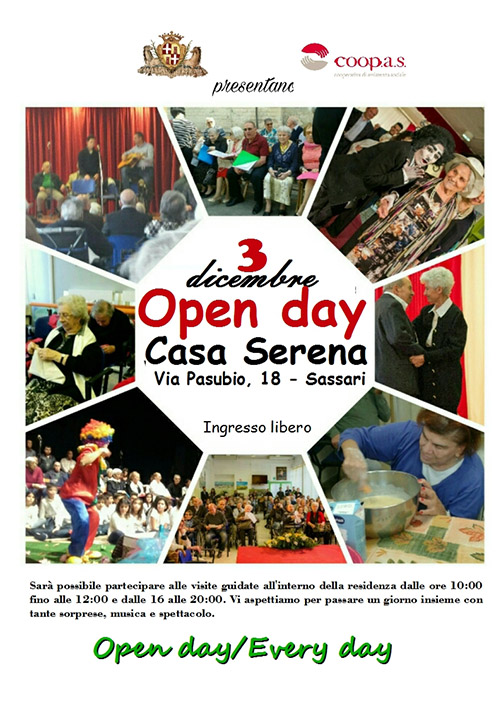 Sassari. C’è un luogo a Sassari dove ogni giorno si fa teatro, musica, si dipinge, dove si possono seguire corsi di cucito, di cucina e fare attività fisica, ma soprattutto dove è conservata viva la memoria storica della città e le sue più antiche tradizioni. Sabato 3 dicembre Casa Serena spalancherà le sue porte a chiunque vorrà venire a conoscere tutto questo, a chiacchierare con gli ospiti e a visitare mostre di pittura ed esposizioni di opere d’arte, oltre a gustare le creazioni dei cuochi della residenza in via Pasubio.