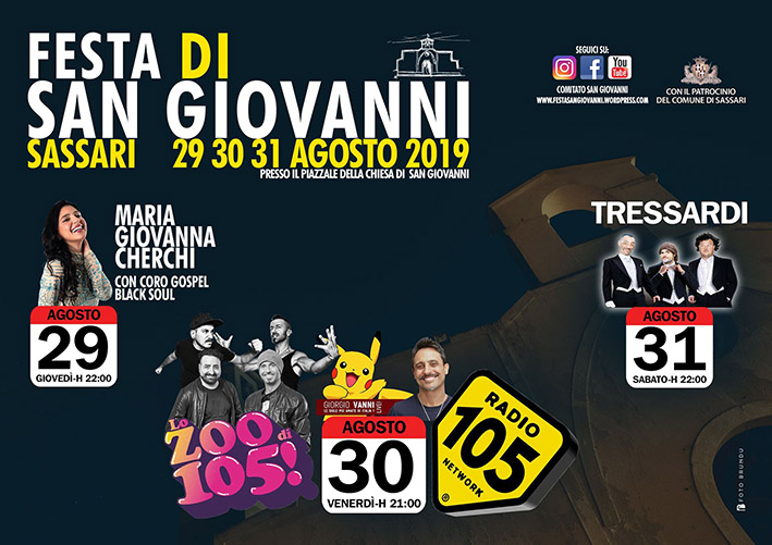 Sassari. Ricco cartellone di appuntamenti per la festa patronale di San Giovanni 2019, organizzata dall’associazione culturale comitato festeggiamenti San Giovanni Battista.