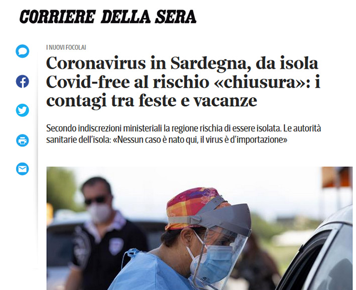 «Niente di più falso – specifica il presidente –. È evidente che chi scrive non ha analizzato la provenienza dei contagi. Buona parte dei casi di positività non sono ascrivibili a sardi o residenti».