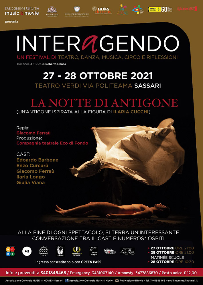 Sassari. Le Antigoni di ogni tempo e di ogni luogo sono donne che cercano la verità sfidando il sistema per un senso innato di giustizia, o magari per amore di un fratello, come nel caso di Ilaria Cucchi. A questa donna straordinaria e coraggiosa è ispirato lo spettacolo teatrale della compagnia milanese Eco di Fondo che, mercoledì 27 ottobre alle 21, e in replica giovedì 28 alla stessa ora, porta per la prima volta a Sassari, sul palcoscenico del Teatro Verdi di via Politeama, “La notte di Antigone”. Alle scuole sarà appositamente riservato un matinée, alle 10.30, solo nella giornata del 28 ottobre, con un particolare sconto per gli studenti.