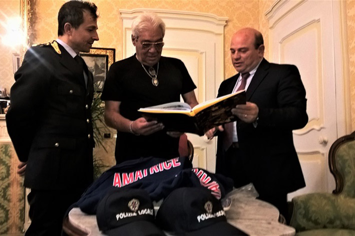 Visita a Palazzo Ducale, ricevuto dal sindaco Nicola Sanna e dal comandante Gianni Serra