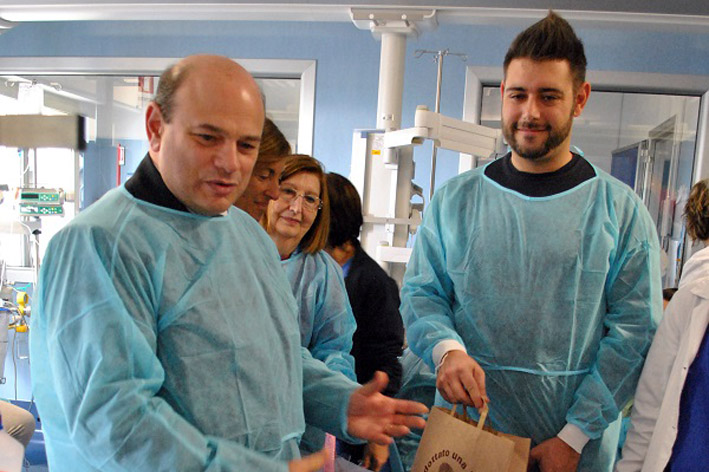 Sassari. Un gesto di solidarietà nei confronti delle popolazioni più povere del mondo, dove ancora oggi il 20 per cento dei bambini non ricevono la vaccinazione e dove è ancora alta la mortalità materna: per loro una pigotta a forma di angioletto, una pergamena di “benvenuto al mondo” con un confetto. Sono i doni che ieri, in occasione della Giornata mondiale dei diritti dei bambini che si celebra oggi, il sindaco Nicola Sanna e la presidente del Comitato Unicef di Sassari Silvana Pinna hanno portato ai neonati del Nido e del reparto di Neonatologia dell’Azienda ospedaliera universitaria di Sassari (Aou).