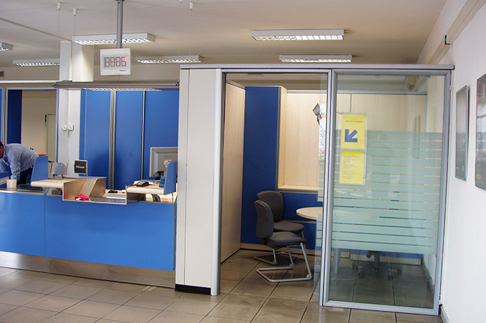 Nuovo look riprogettato secondo l’ultimo modello di Poste Italiane. Eliminati i vetri di separazione. Disponibile anche una sala consulenza