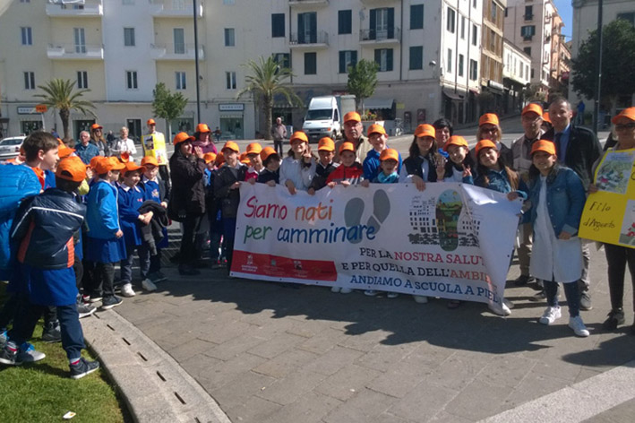 Sassari. L’idea è quella di sensibilizzare gli utenti della strada, in particolare gli automobilisti, alla tutela dei pedoni. E ancora, sottolineare l’importanza del camminare per stare in salute e di camminare in sicurezza. Così questa mattina al motto “siamo tutti pedoni”, una cinquantina i bambini, con i cappellini arancioni in testa e lo striscione “siamo nati per camminare”, hanno portato per la città un messaggio chiaro agli automobilisti e ai loro concittadini.