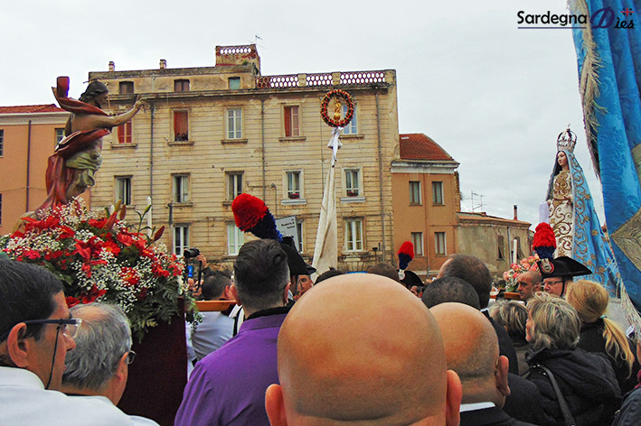 Sassari. Con la cerimonia di “S’Incontru” si sono chiusi domenica mattina i riti della Settimana Santa e della Pasqua. A Sassari, in piazza Mazzotti, intorno alle 10,45, le statue di Gesù Risorto e della Vergine Maria si sono ritrovate una di fronte all’altra. Dalla chiesa della Santissima Trinità l’Arciconfraternita di Santa Croce e del Gonfalone ha guidato la processione del Cristo Risorto, mentre dalla chiesa di Sant’Antonio Abate l’Arciconfraternita dei Servi di Maria ha portato in processione la Madonna. In piazza Colonna Mariana erano presenti anche il sindaco Nicola Sanna, le autorità religiose, le confraternite cittadine ed una rappresentanza dei Gremi. Il momento dell’Incontro è stato salutato dagli spari a salve della Compagnia Barracellare.
