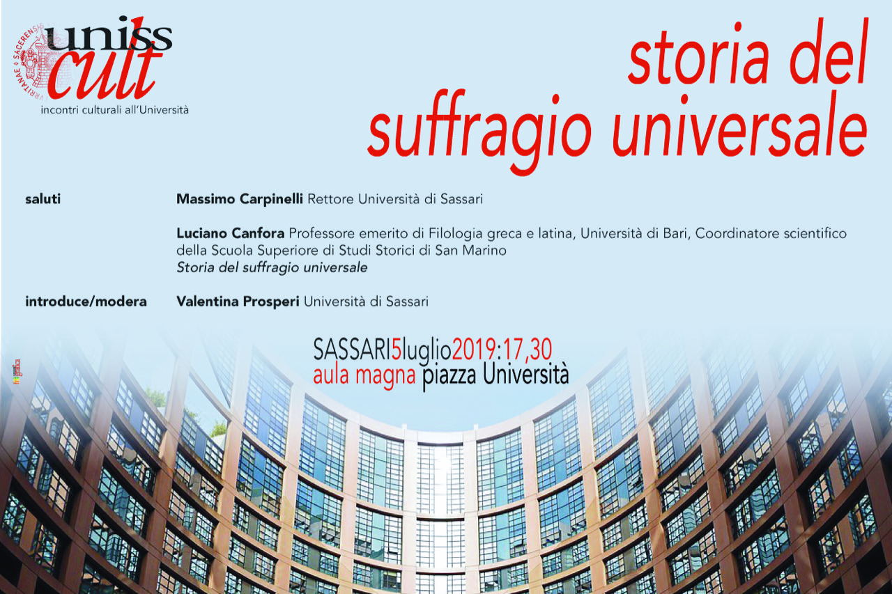 “Storia del suffragio universale” è il titolo del suo intervento, che sarà preceduto dai saluti del rettore dell’Università di Sassari, Massimo Carpinelli. Modera la serata la professoressa Valentina Prosperi, docente di Filologia classica nel Dipartimento di Storia, scienze dell’uomo e della formazione dell’ateneo di Sassari.