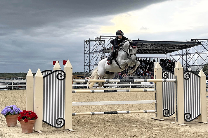 Gran Premio Chimirri. Tutta in famiglia la sfida decisiva nella seconda manche del Gran Premio C150, che metteva in palio 40 mila euro. L’ha vinta l’amazzone Elisa Chimirri in sella al grigio Your Lord d’Acheronte, unico binomio a fare percorso netto in entrambe le manche. Ha battuto il papà Bruno, che in sella a Je Suis Godot d’Acheronte ha fatto percorso netto nel barrage, ma si portava appresso il punto di penalità della prima manche per aver superato seppur di poco il tempo limite. E’ stata la rivincita di Elisa rispetto al Sardegna Jumping Tour del 2022, ma il sorriso orgoglioso e il pollice alzato di Bruno Chimirri indirizzato alla figlia spiegano quanto la “sconfitta” sia stata dolce. Il formidabile cavaliere azzurro (secondo per presenze in nazionale tra quelli in attività) ha occupato anche il terzo gradino del podio con Samara, mentre ancora Elisa è arrivata quarta con Calandro Z. Alla doppia accoppiata dell’Arma dei Carabinieri va aggiunto il quinto posto dell’Esercito grazie a Francesco Correddu, cavaliere di origini sarde e vincitore del titolo nazionale Under 25, che si è classificato quinto con Dalakani Chardonnet e sesto con Ultos, cavallo sardo.