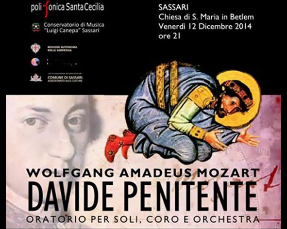 Sassari. Il Conservatorio di Musica “Luigi Canepa” di Sassari e l’Associazione Polifonica Santa Cecilia onlus presentano l’opera, in prima esecuzione assoluta per la Sardegna, “Davide Penitente”, oratorio per soli, coro e orchestra di W.A. Mozart. Il concerto si terrà nella chiesa di Santa Maria di Betlem a Sassari venerdì 12 dicembre alle 21 e vedrà impegnati nell’esecuzione l’orchestra del Conservatorio di Sassari, il coro della Polifonica Santa Cecilia e, come solisti, i soprani Francesca Dotto e Annalisa Stroppa e il tenore Matteo Desole, sotto la direzione del maestro Andrea Solinas.