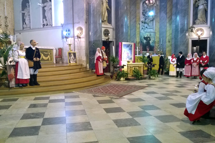 La messa del 19 aprile sarà in sardo in vari tratti, come la lettura del Vangelo, l’omelia, e la proclamazione della sacre Scritture: Salmo responsoriale e gli annunci solenni. Nel corso della funzione sarà letto il Padre Nostro sia in sardo, tratto dalla basilica del Pater Noster di Gerusalemme, sia in sassarese. Tutta la celebrazione sarà scandita dai brani sacri sardi e sassaresi eseguiti dall’Associazione corale “Amici del canto sardo” con la direzione di Salvatore Bulla. Farà corona l’“Associazione culturale e folklorica Thathari” in abito etnico, mentre l’Assòtziuculturale “Pro no Ismentigare” curerà l’aspetto linguistico delle letture. Le icone del Babbu Nosthru saranno donate ai fedeli. Tutte le associazioni contribuiranno gratuitamente all’iniziativa.